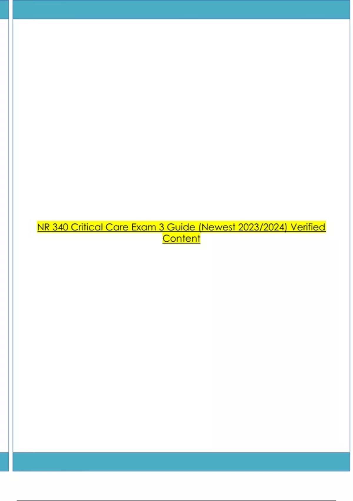 NR 340 Critical Care Exam 3 Guide (Newest 2023/2024) Verified Content