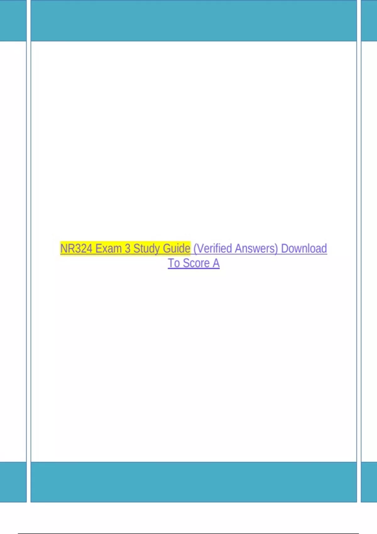 NR324 Exam 3 Study Guide (Verified Answers) Download To Score A