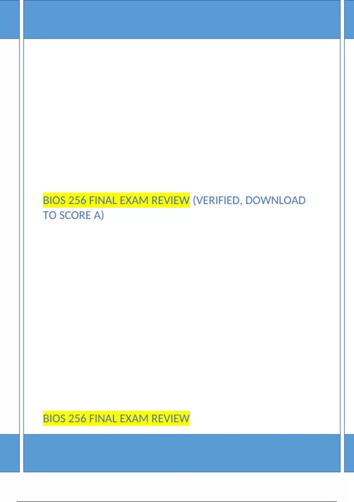BIOS 256 FINAL EXAM REVIEW (VERIFIED, DOWNLOAD TO SCORE A)