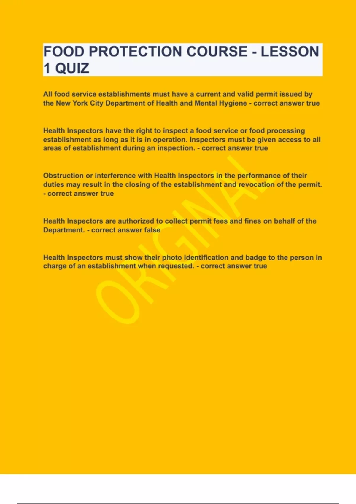 All food service establishments must have a current and valid permit issued by the New York City Department of Health and Mental Hygiene - correct answer true