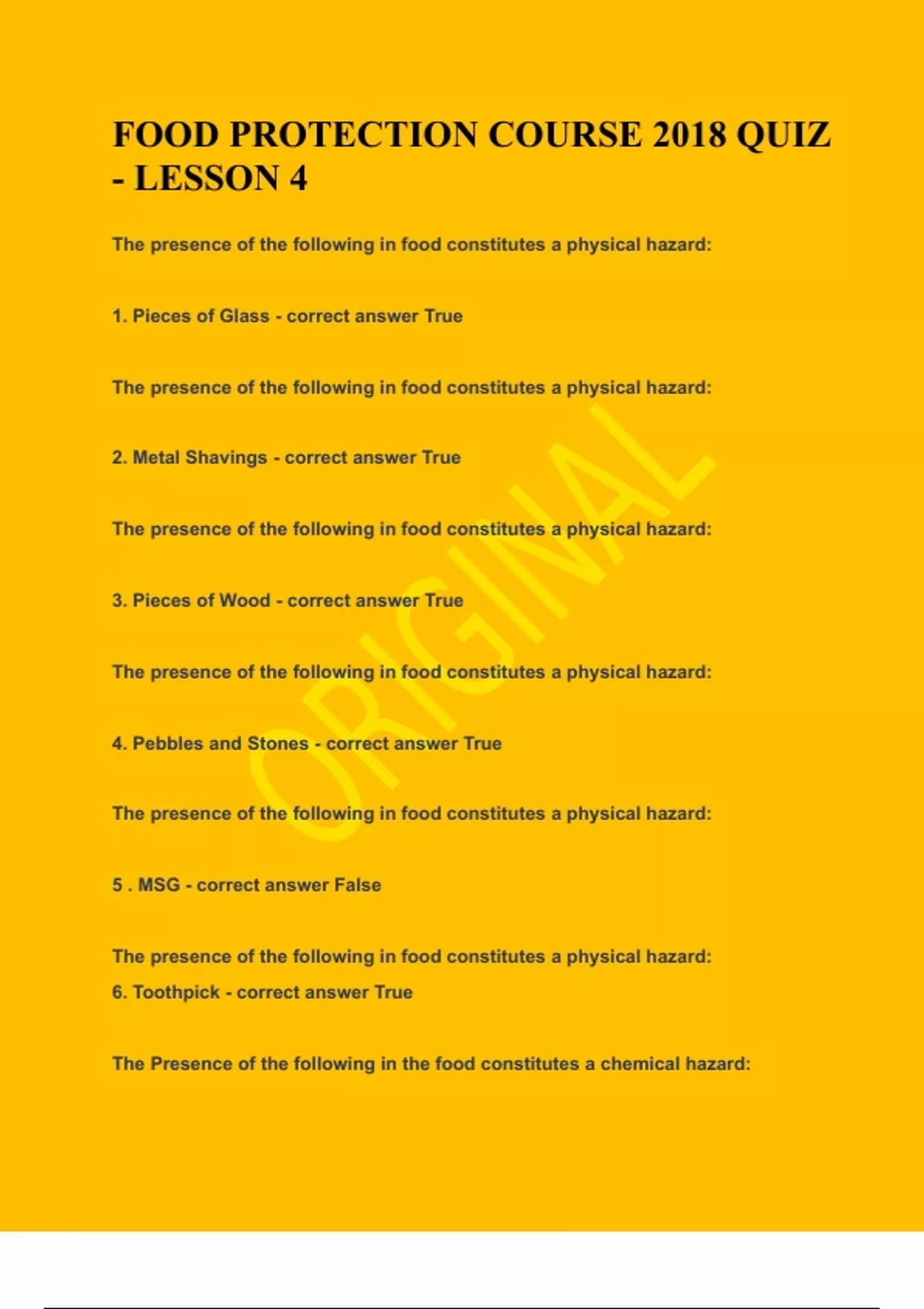 FOOD PROTECTION COURSE 2018 QUIZ - LESSON 4|2023 LATEST UPDATE|GUARANTEED SUCCESS