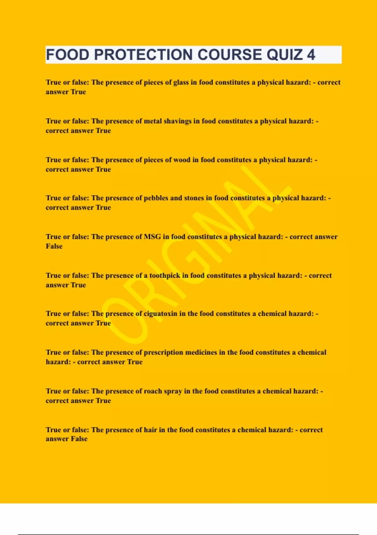 FOOD PROTECTION COURSE QUIZ 4|2023 LATEST UPDATE|GUARANTEED SUCCESS