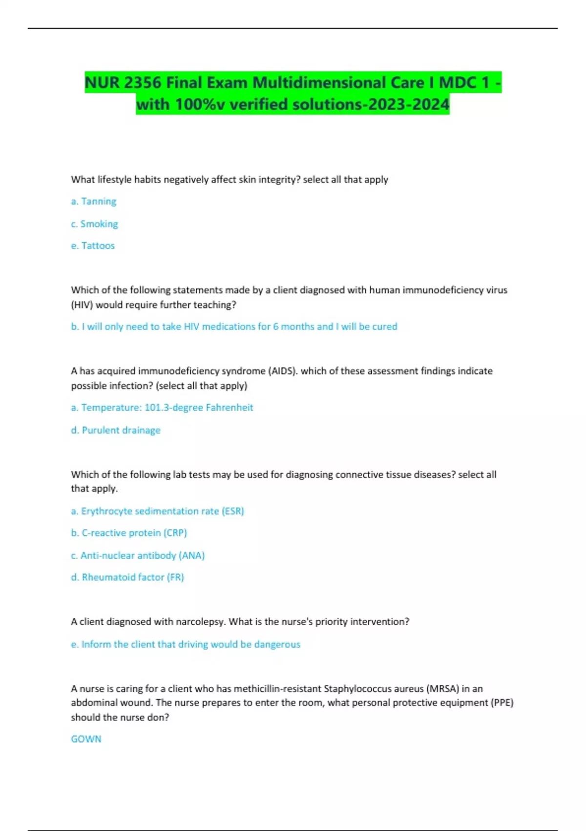 NUR 2356 Final Exam Multidimensional Care I MDC 1 - with 100%v verified solutions-
