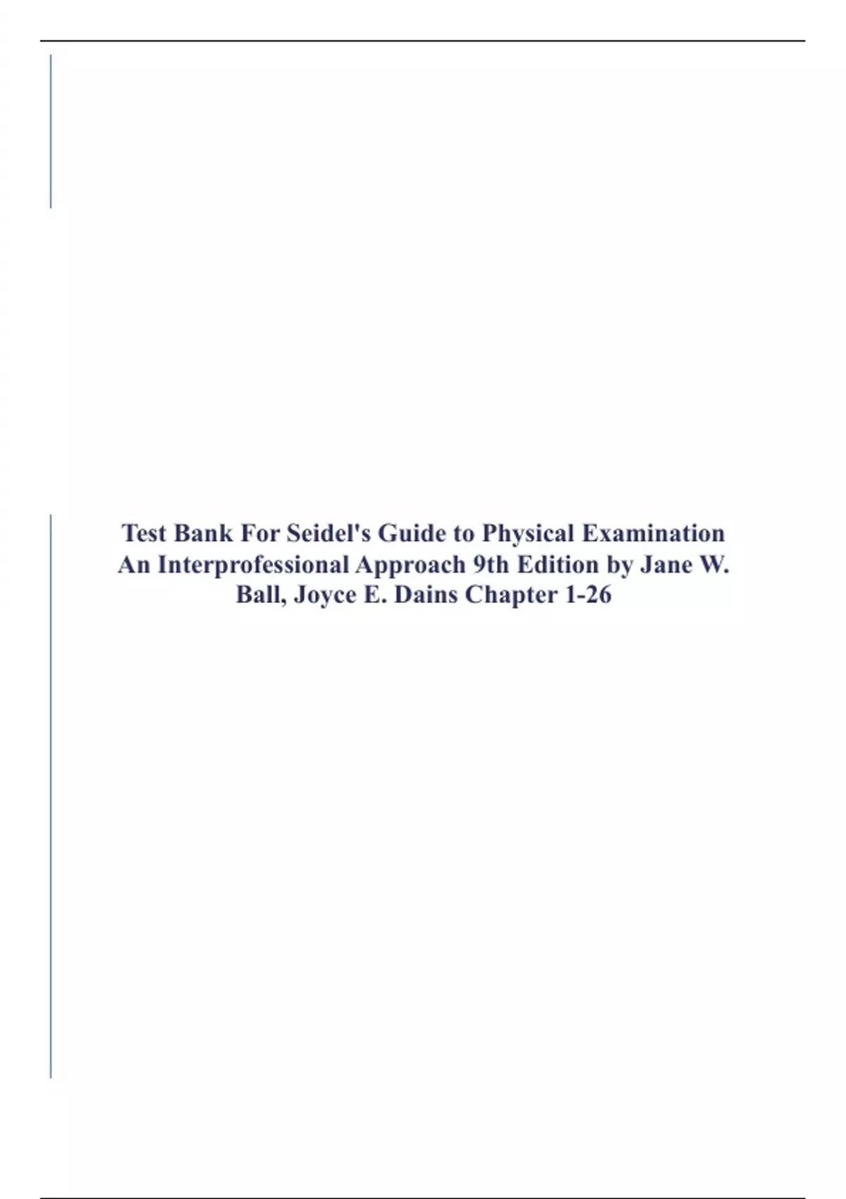 Test Bank For Seidel's Guide to Physical Examination An Interprofessional Approach 9th Edition by Jane W. Ball, Joyce E. Dains Chapter 1-26