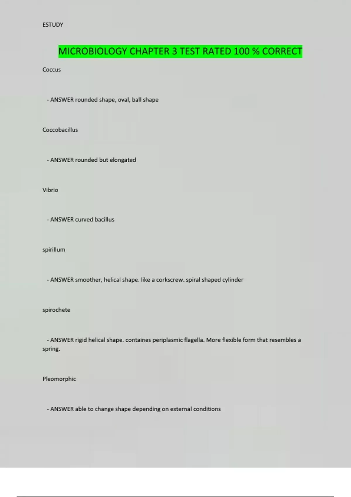 MICROBIOLOGY CHAPTER 3 TEST RATED 100 % CORRECT