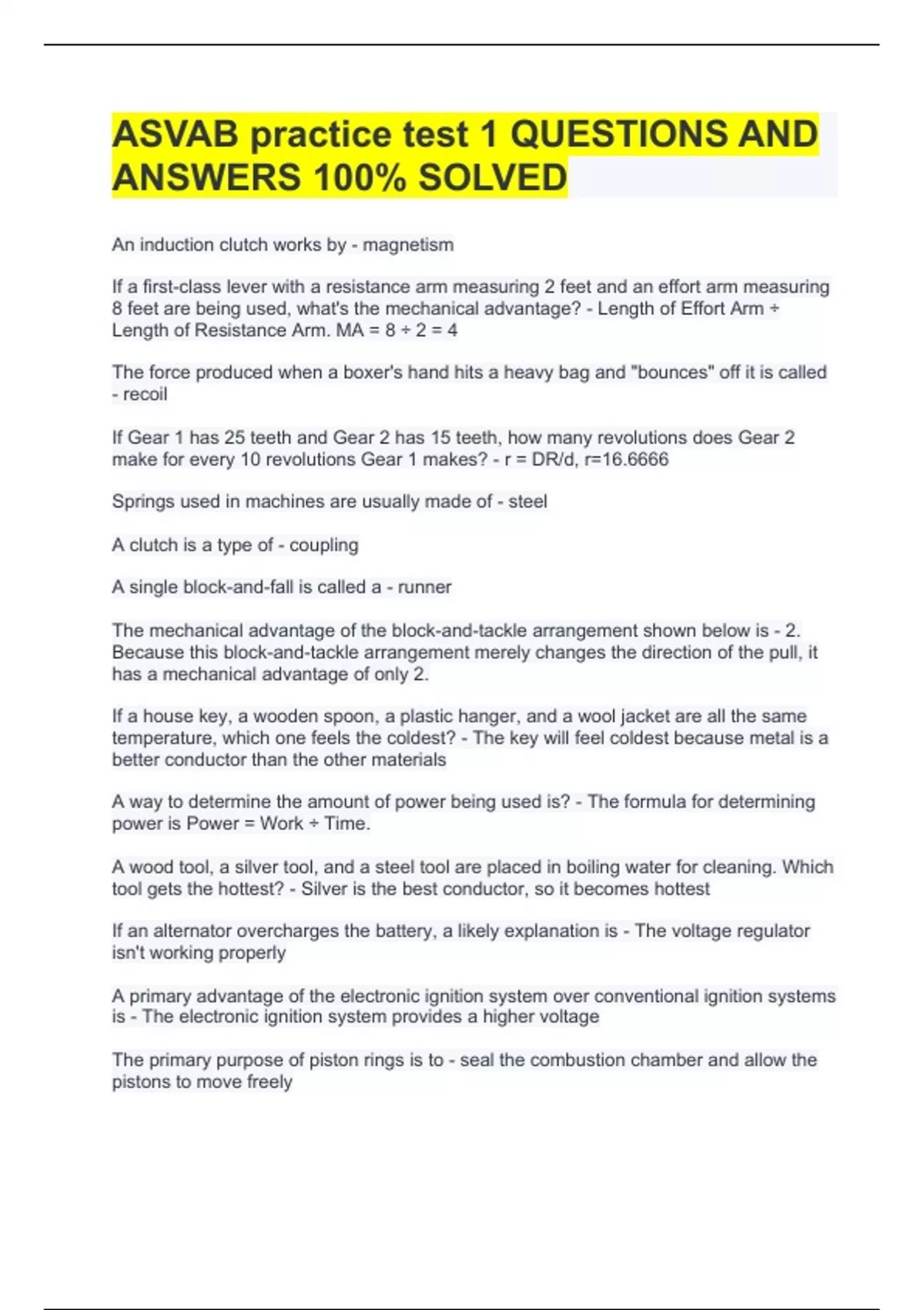ASVAB practice test 1 QUESTIONS AND ANSWERS 100% SOLVED