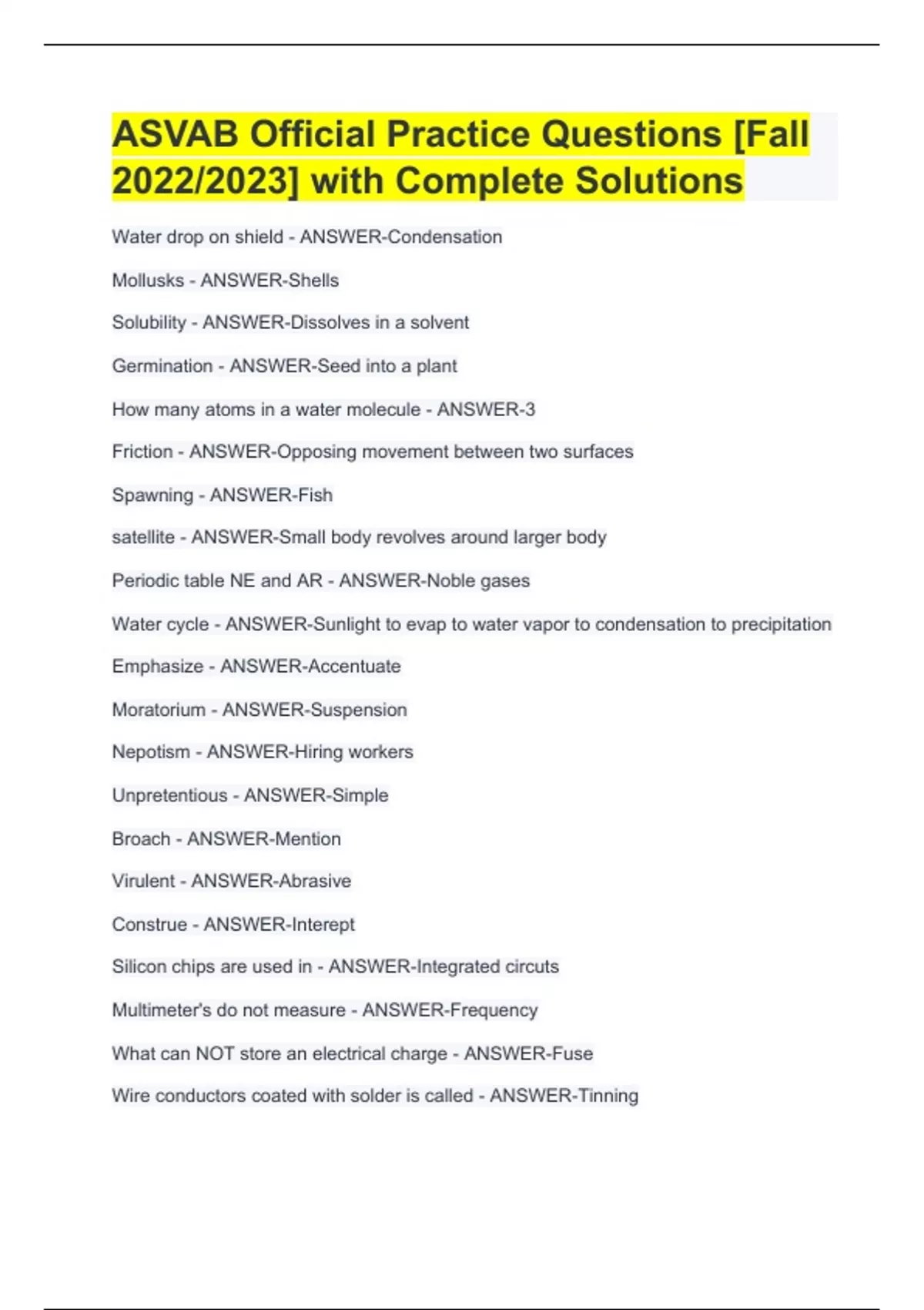 ASVAB Official Practice Questions [Fall 2022/2023] with Complete Solutions