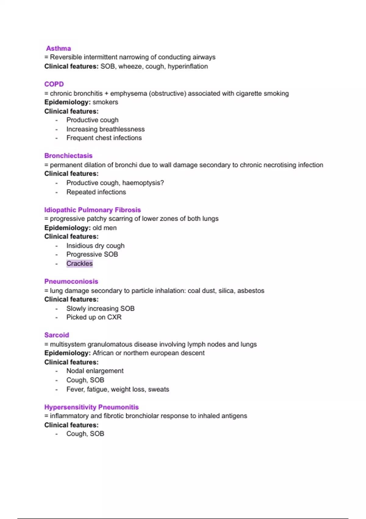 Clinical features: SOB, wheeze, cough, hyperinflation