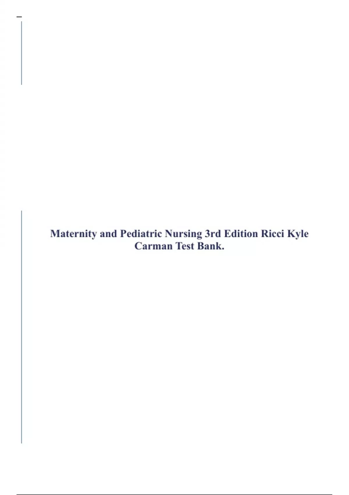 Maternity and Pediatric Nursing 3rd Edition Ricci Kyle Carman Test Bank.