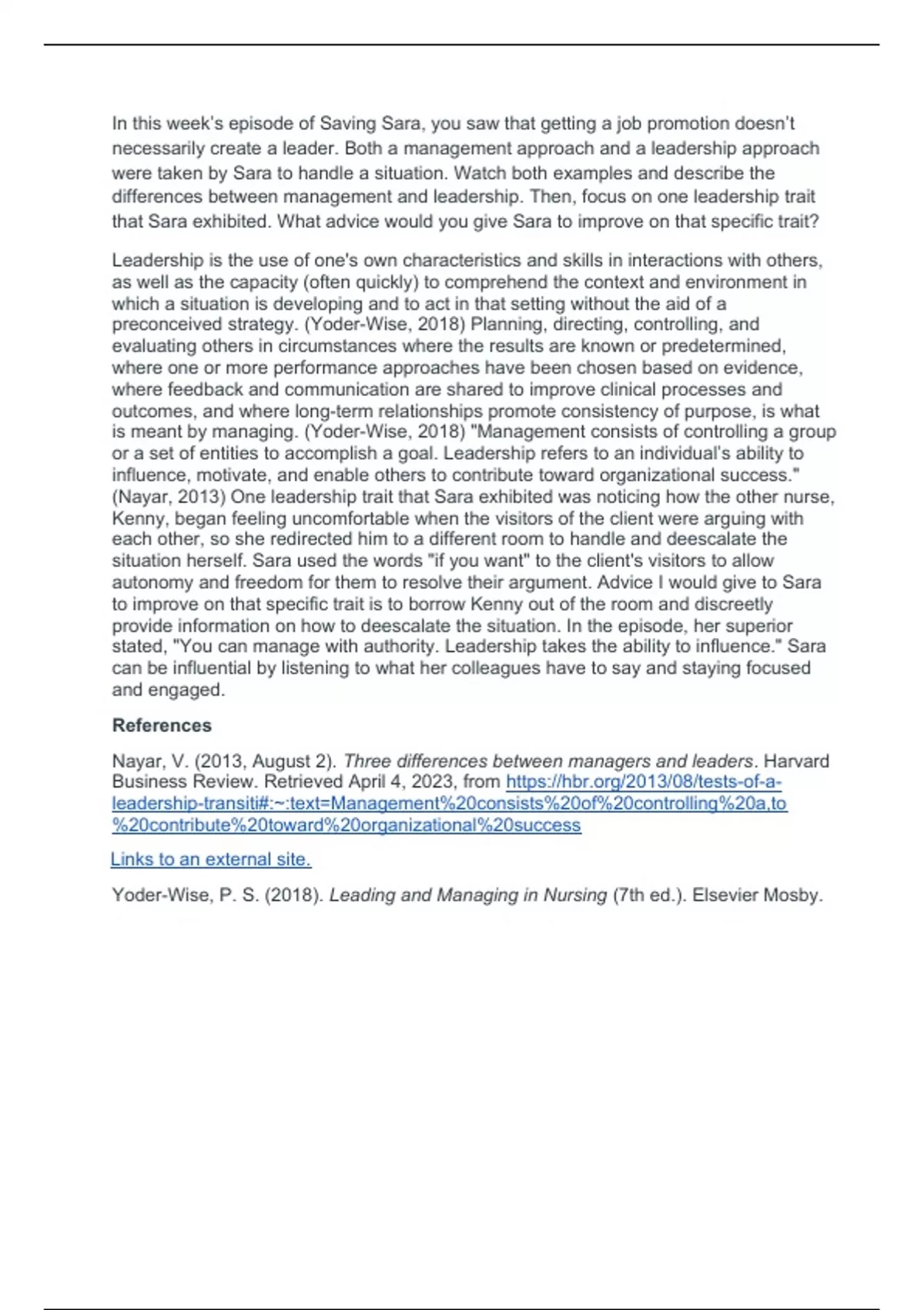 Leadership and management discussion post week 1, Prof Bernasconi.
