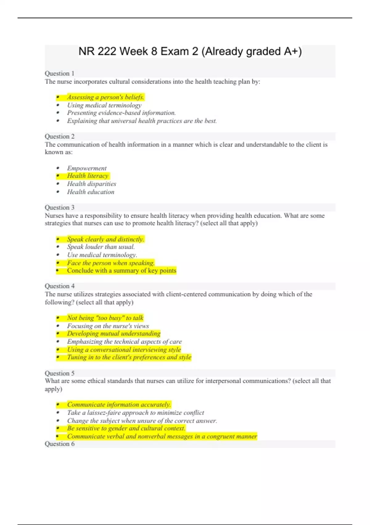nr 222 week 8 exam 2 already graded a