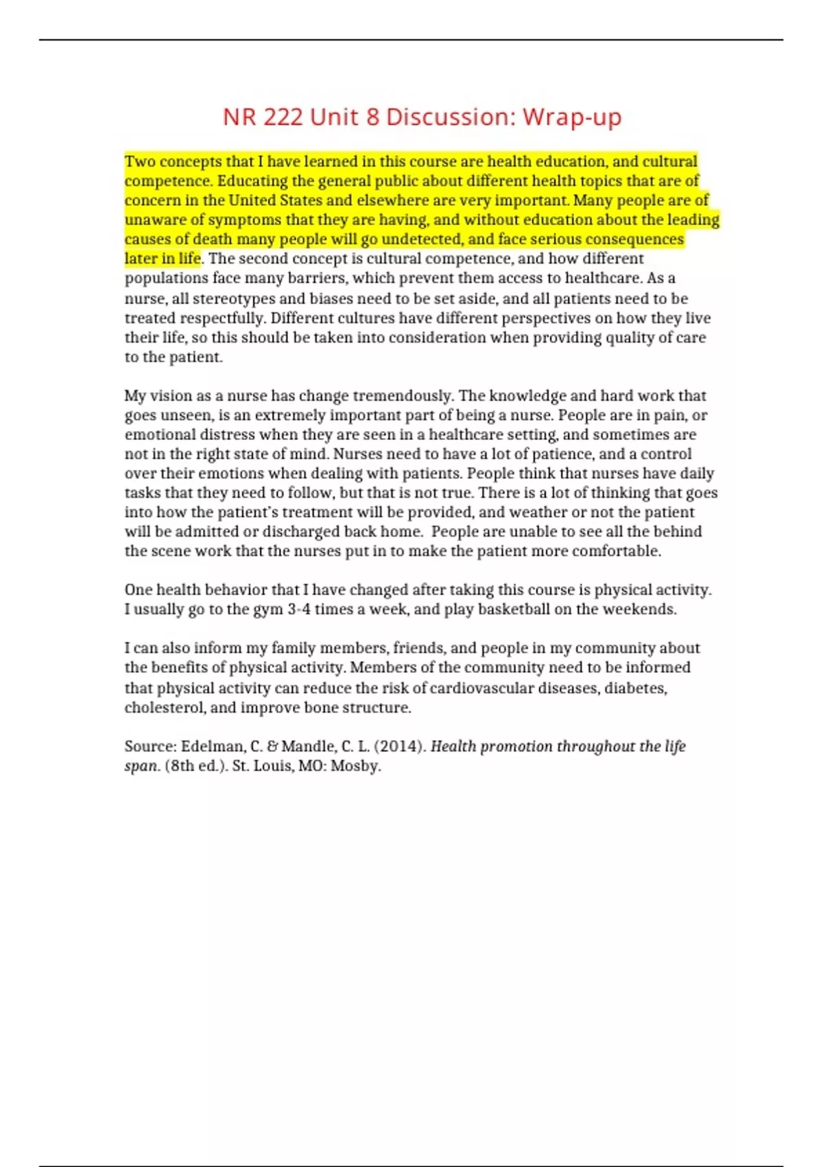 NR 222 Unit 8 Discussion: Wrap-up l Rated A+