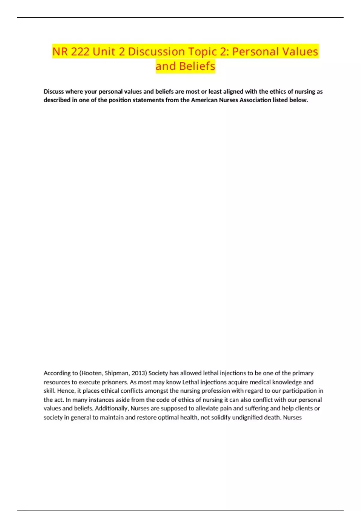NR 222 Unit 2 Discussion Topic 2: Personal Values and Beliefs NR 222 Unit 2 Discussion Topic 2: Personal Values and Beliefs Verified Content