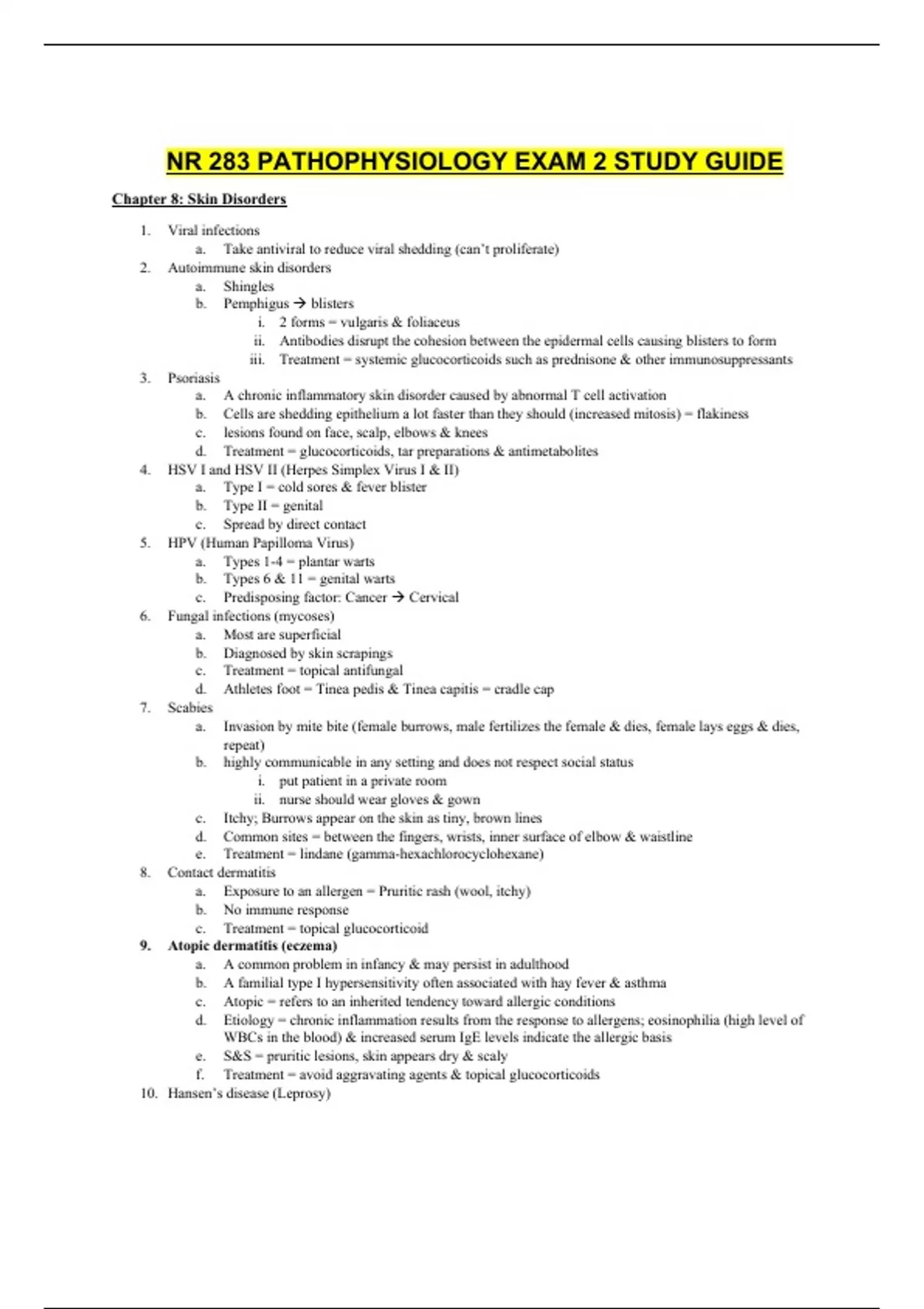 NR 283 PATHOPHYSIOLOGY EXAM 2 STUDY GUIDE (Verified Answers, Download to Score A)