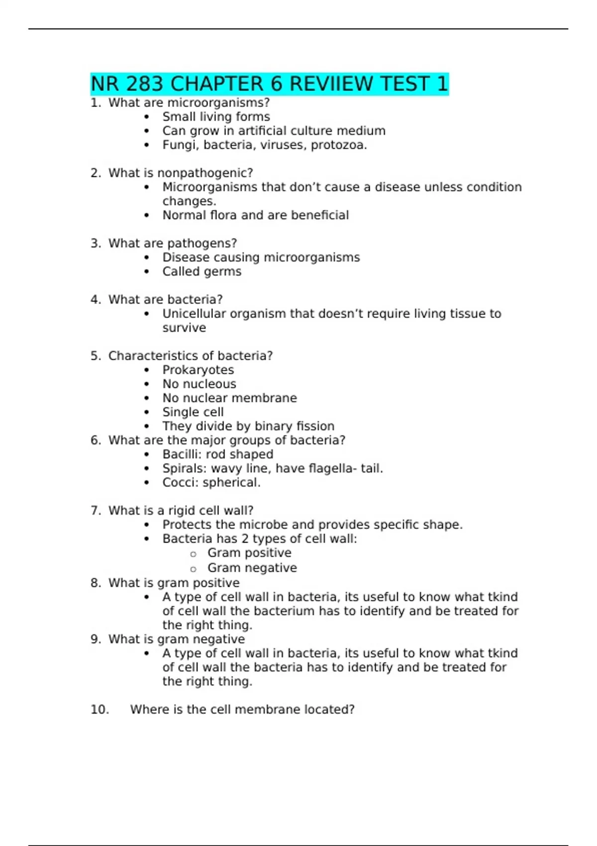NR 283 CHAPTER 6 REVIIEW TEST 1 (Latest 2023/2024) Verified Answers