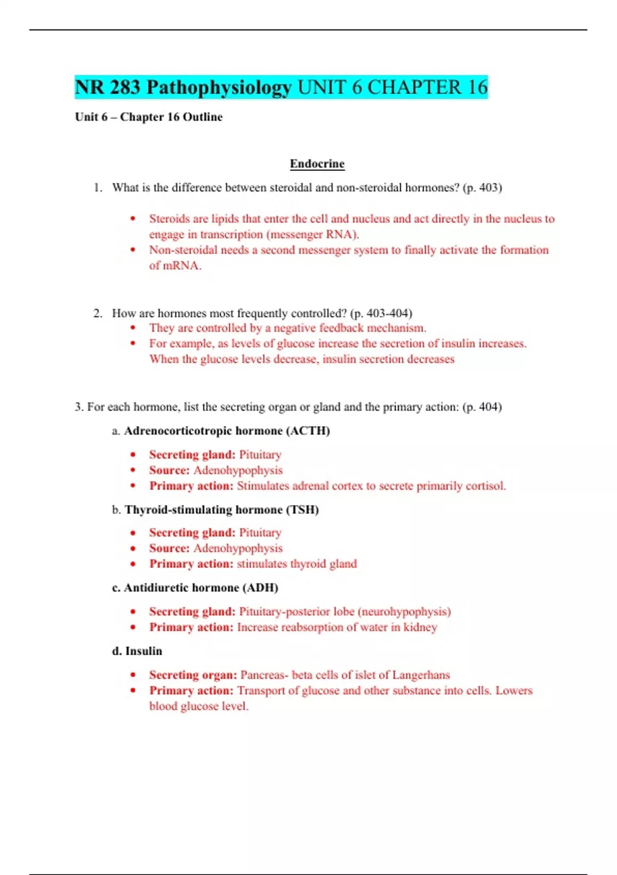 nr 283 pathophysiology unit 6 chapter 16 latest 2