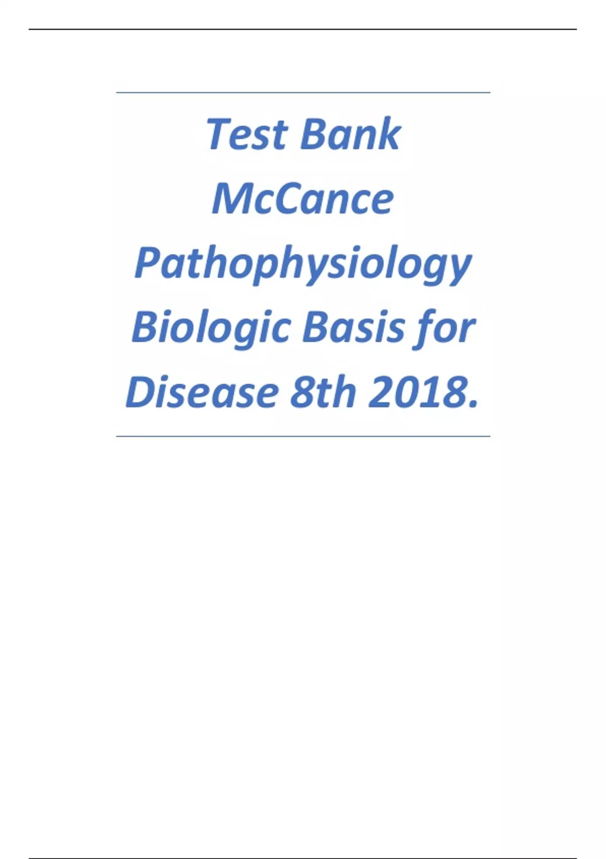 Test Bank McCance Pathophysiology Biologic Basis for Disease 8th 2018