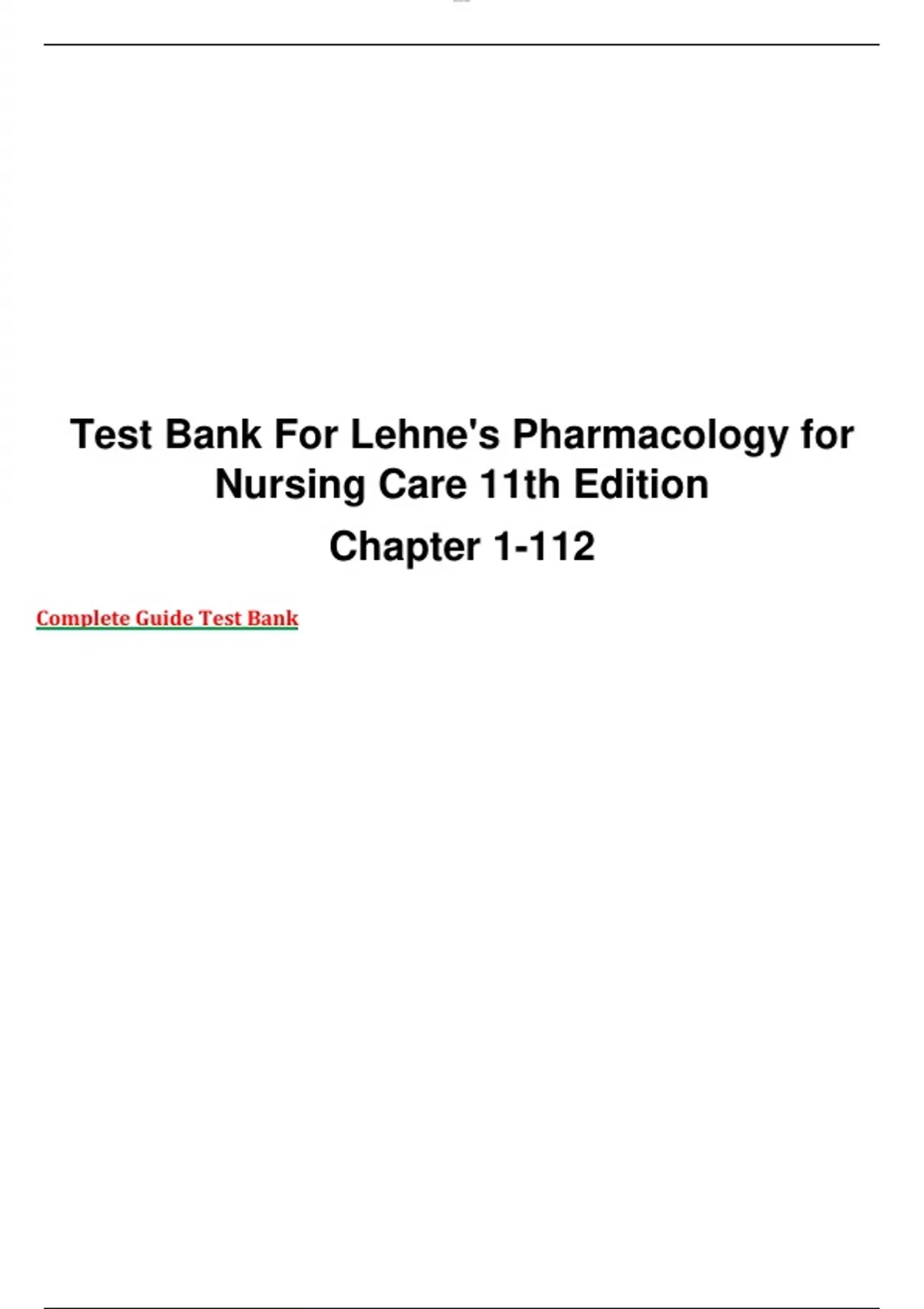 to offer you the Test Bank for Lehne's Pharmacology for Nursing