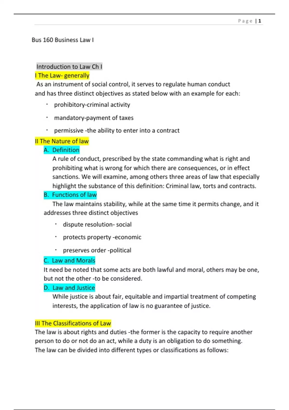 BUS 160 - Business Law