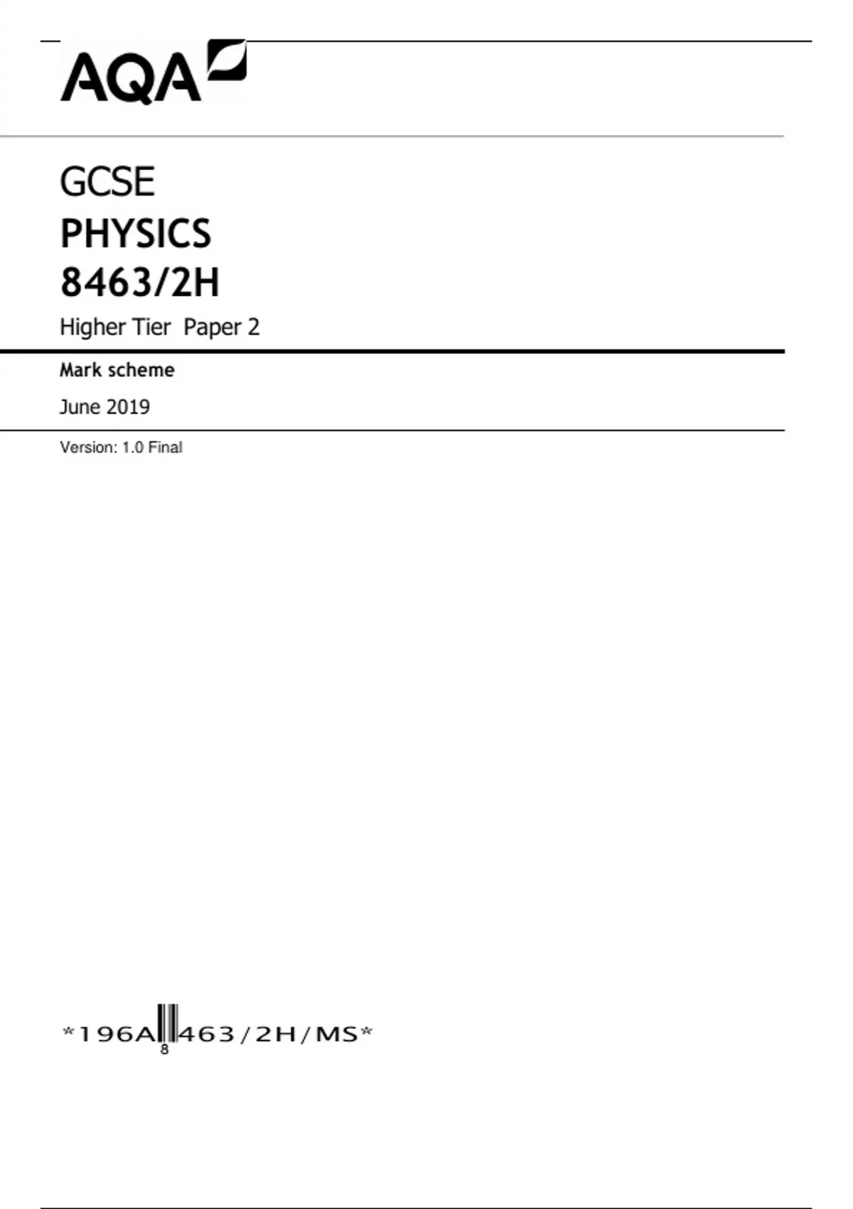 AQA GCSE PHYSICS 84632H Higher Tier Paper 2