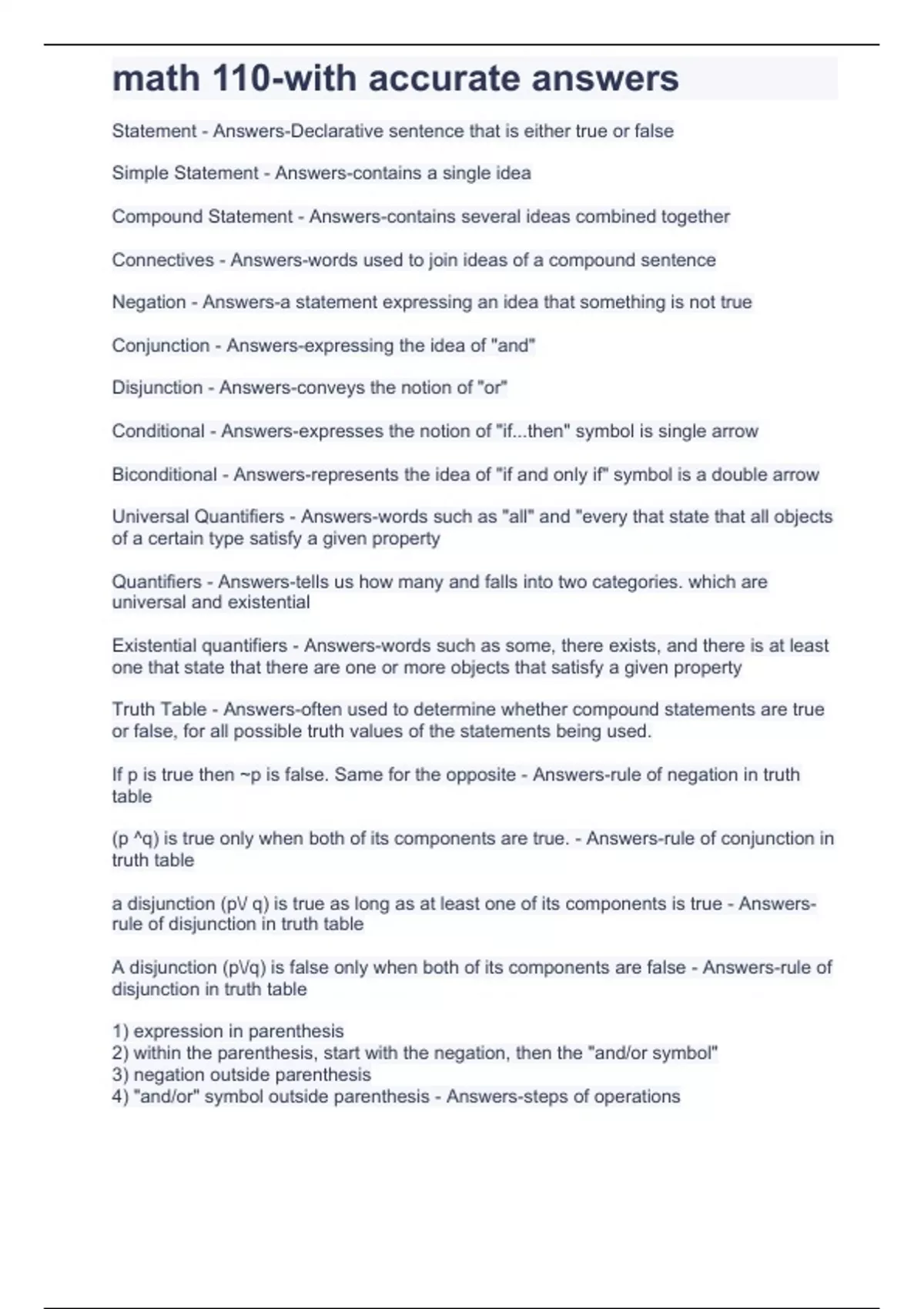 Truth Table - Answers-often used to determine whether compound statements are true or false, for all possible truth values of the statements being used.