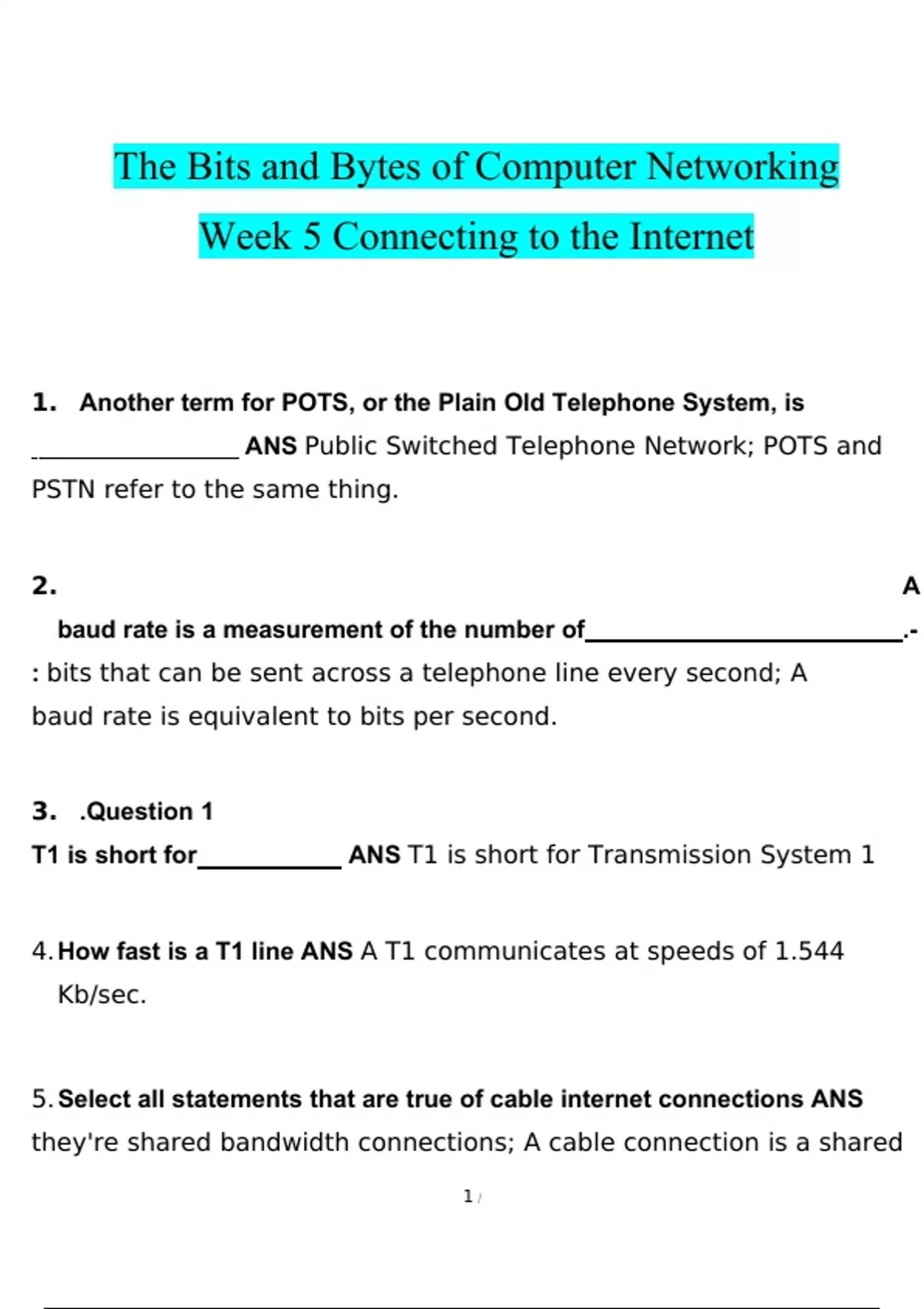 The Bits and Bytes of Computer Networking | (BUNDLE PACK SOLUTION) Questions and Answers Rated A+