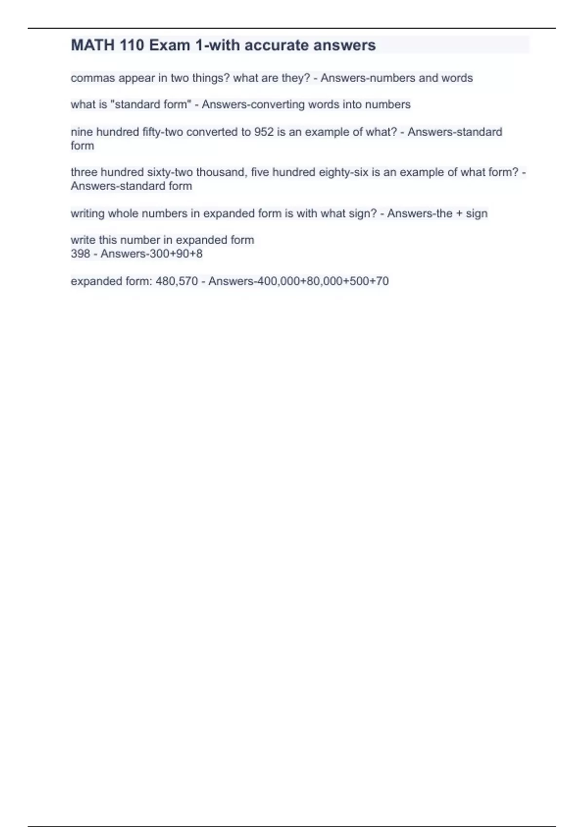 writing whole numbers in expanded form is with what sign? - Answers-the + sign write this number in expanded form 398 - Answers-300+90+8 expanded form: 480,570 - Answers-400,000+80,000+500+70