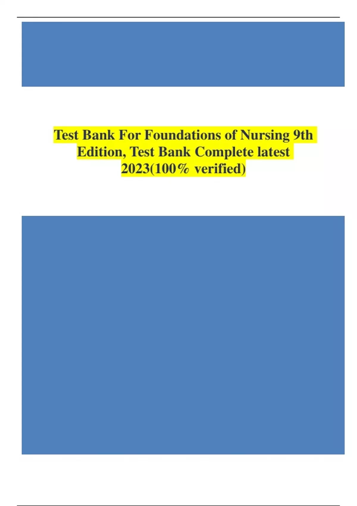 Test Bank For Foundations of Nursing 9th Edition, Test Bank Complete
