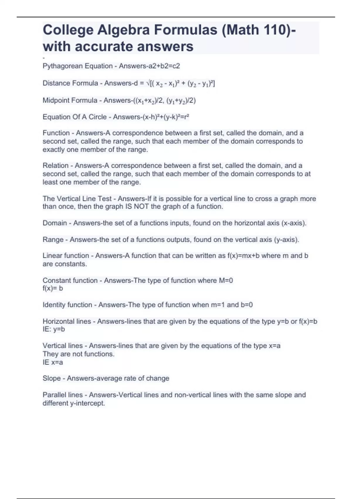 Power Rule - Answers-(a^m)^n= a^mn Raising a quotient to a power - Answers-(a/b)^m = a^m/b^m (a =/= 0) — a can not be equal to zero Raising a product to a power - Answers-(ab)^m=a^m x b^m Interval Notation - Answers-A way of writing the set of all real numbers between two endpoints. Uses the symbols (exclusive ) and/or [Inclusive]. Vertical-Shift, Stretch, Shrink - Answers-V-Shift: f(x)+ k , [k=(+,up), k=(-,down)] V-Stretch: a X f(x) , [a > 1] V-Shrink: a X f(x) , [0 < a < 1] Horizontal Shift (K-unit) - Answers-f (x+k) , [k=(+,up), k=(-,down)] - if K is (+), the graph moves Left