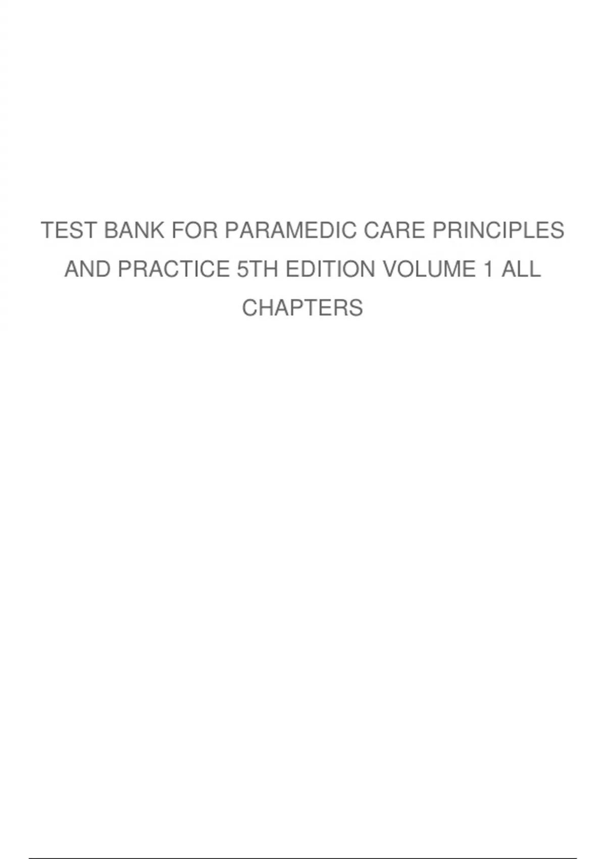 TEST BANK FOR PARAMEDIC CARE PRINCIPLES AND PRACTICE 5TH EDITION VOLUME 1 BY BLEDSOE ALL CHAPTERS