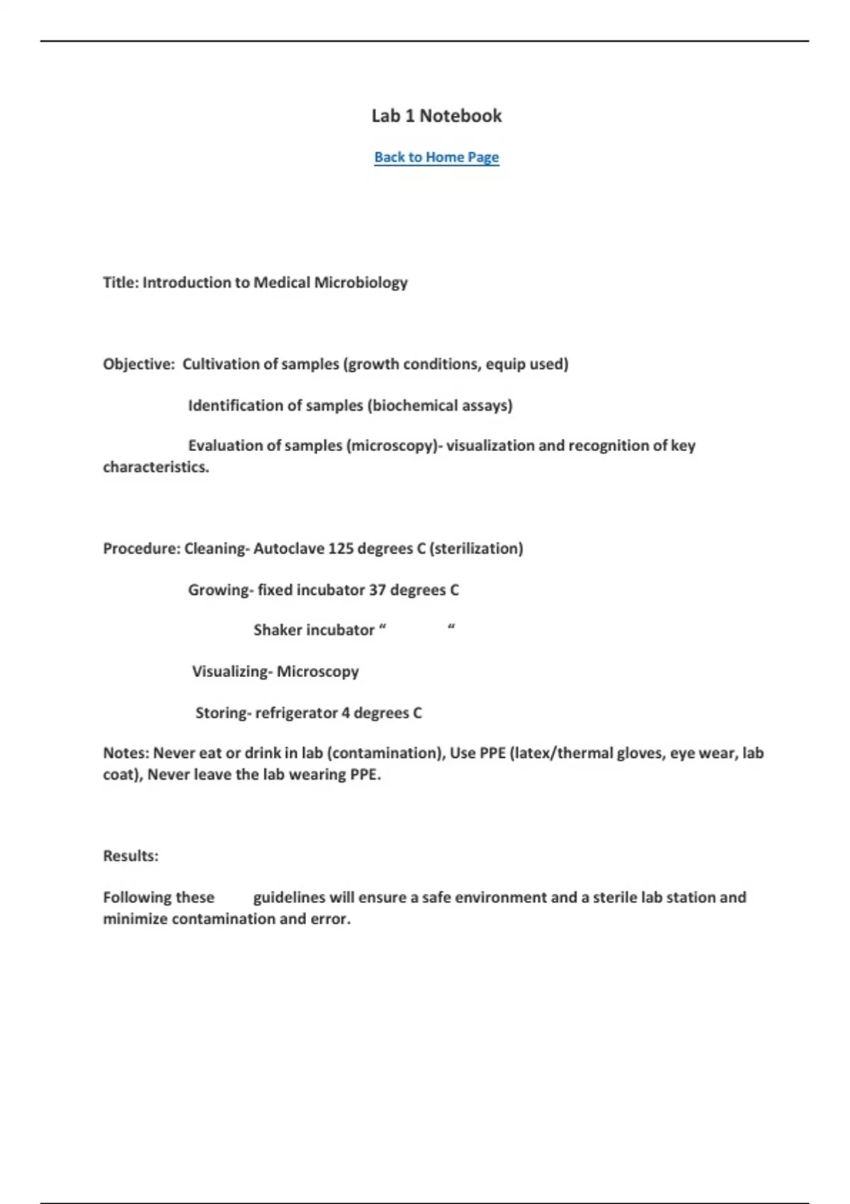 BIOD171 Microbiology Lab Notebook
