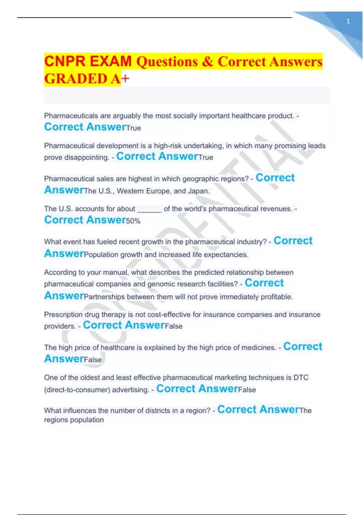 CNPR EXAM Questions & Correct Answers GRADED A+ CNPR EXAM Questions & Correct Answers GRADED A+ CNPR EXAM Questions & Correct Answers GRADED A+