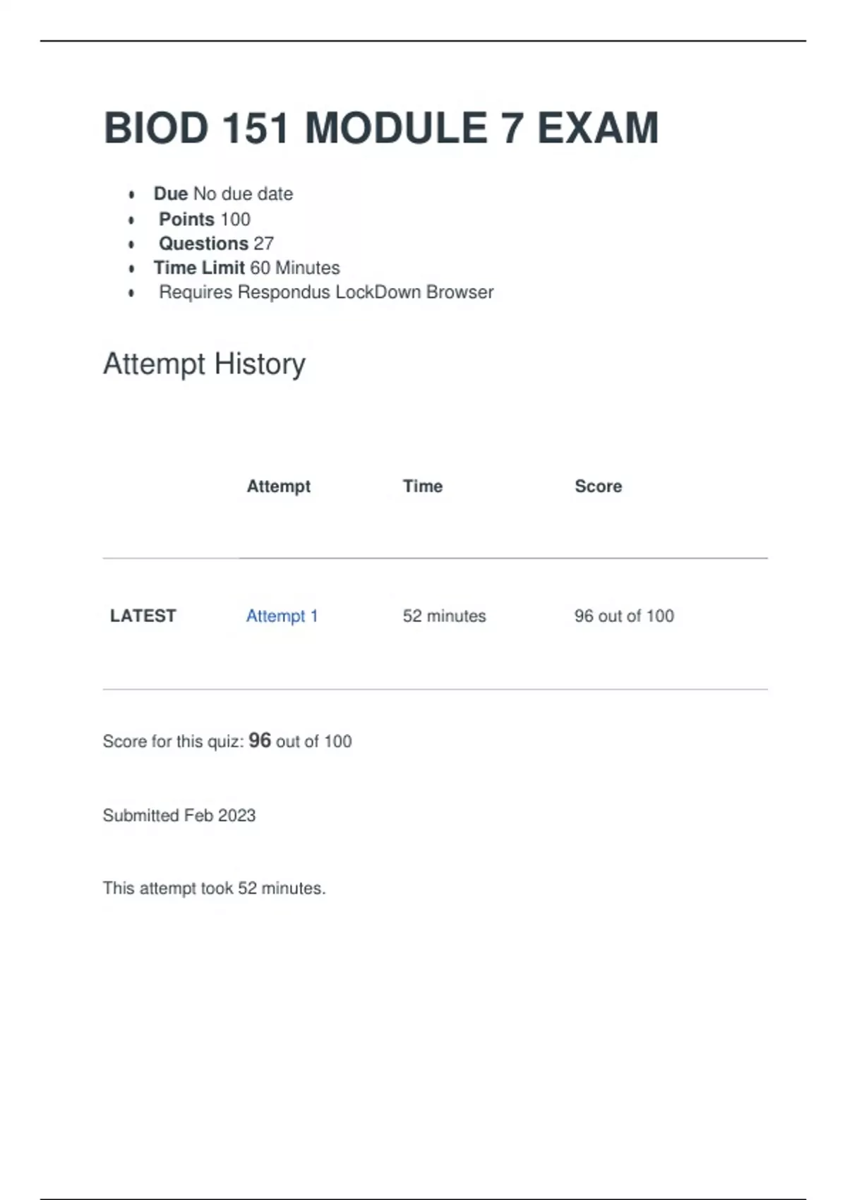 PORTAGE LEARNING BIOD 151 MODULE 7 EXAM RATED A+