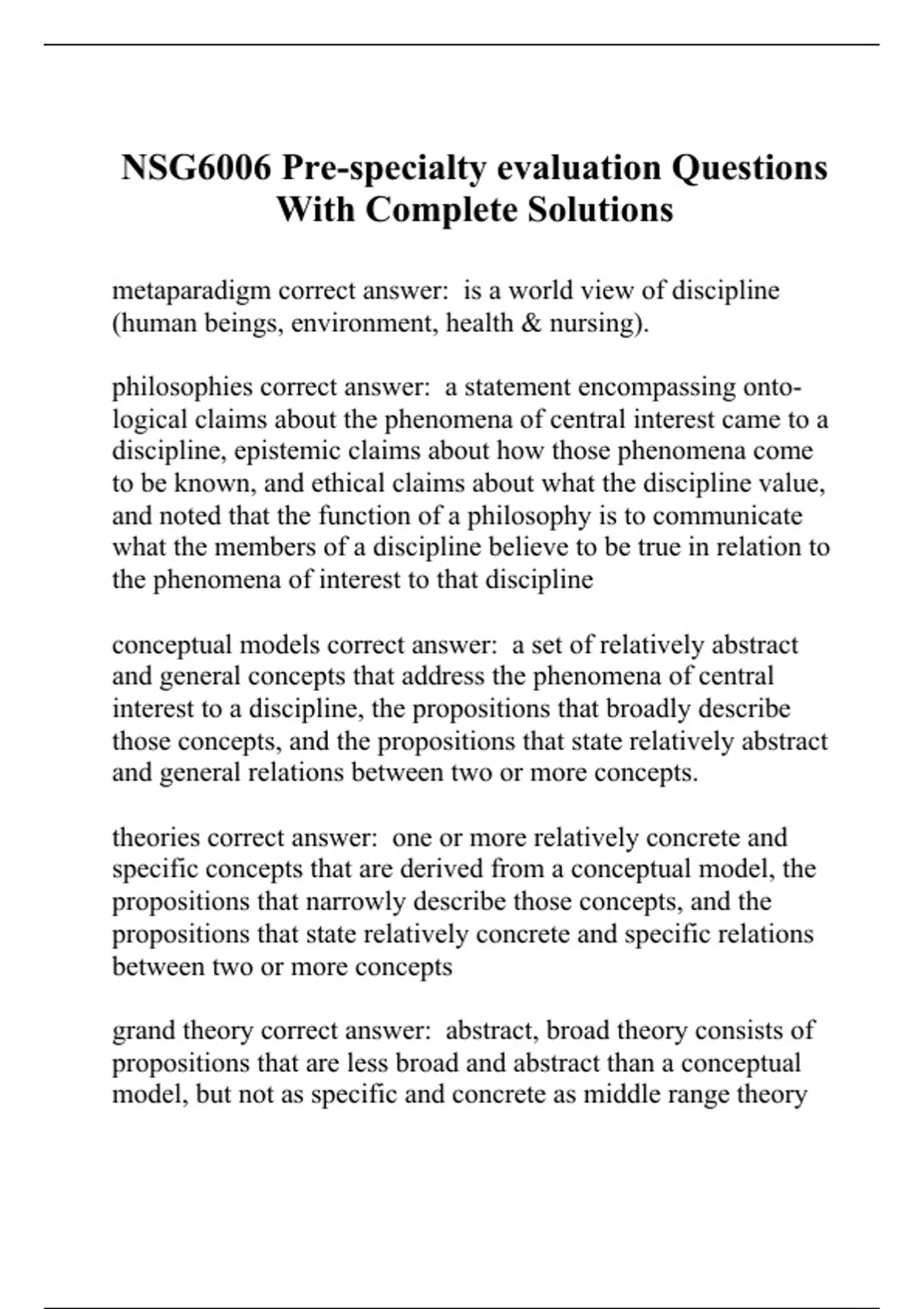 NSG6006 Pre-specialty evaluation Questions With Complete Solutions