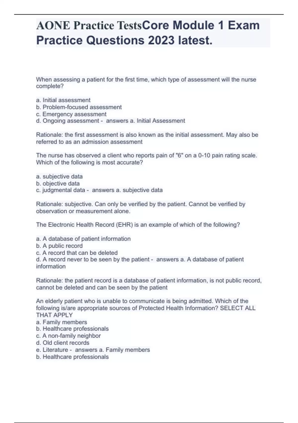 AONE Practice TestsCore Module 1 Exam Practice Questions 2023 latest.