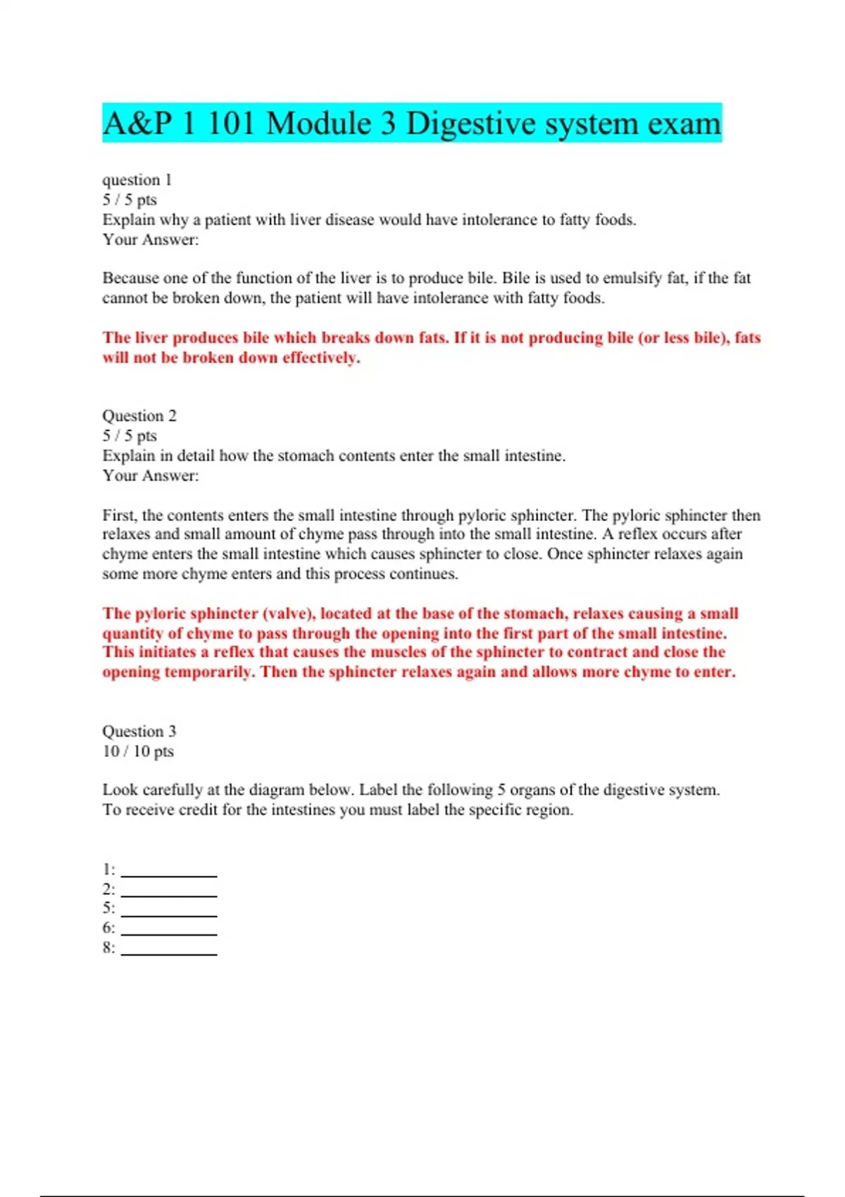A&P 1 101 Module 3 Digestive system exam 2022/2023 |With 100% Verified Answers