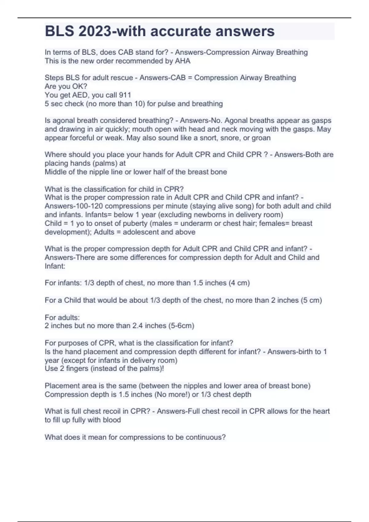 BLS 2023-with accurate answers