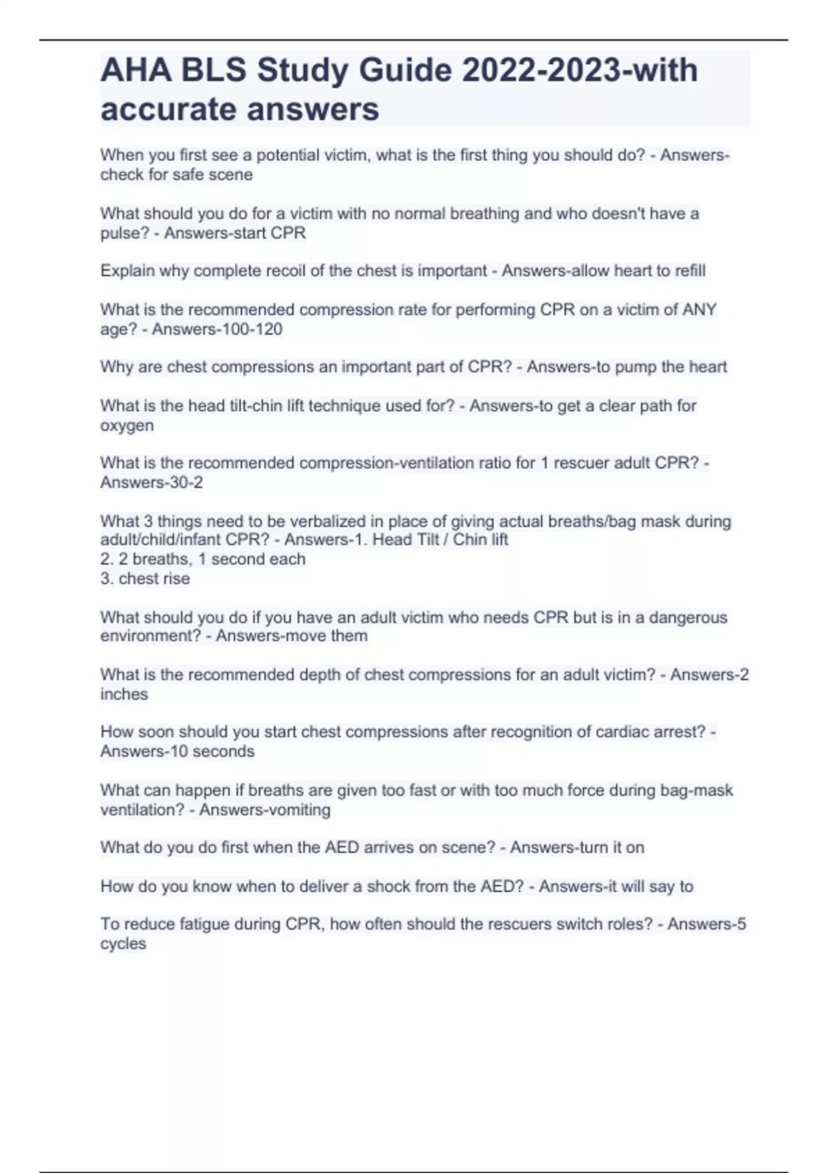 AHA BLS Study Guide -with accurate answers
