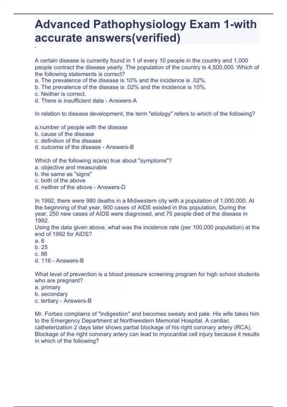 Advanced Pathophysiology Exam 1-with accurate answers(verified)