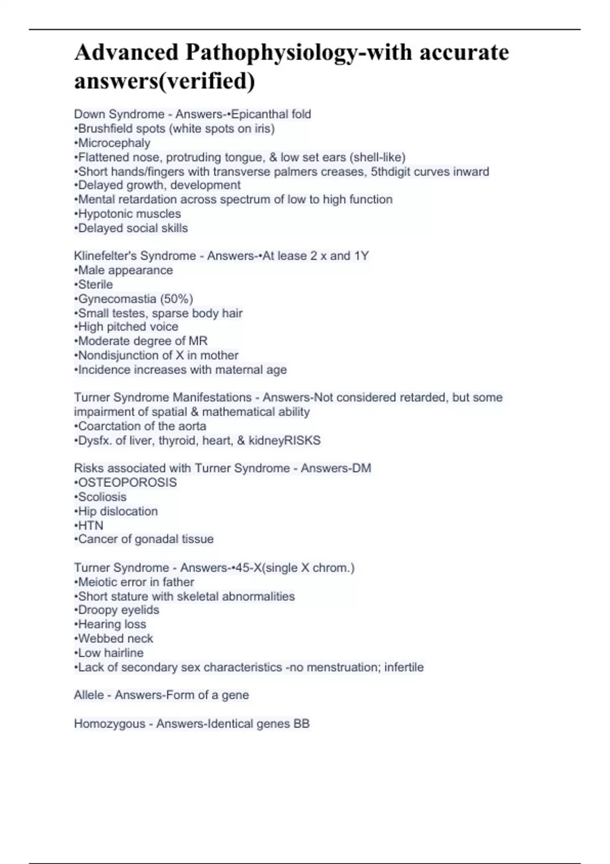 Advanced Pathophysiology-with accurate answers(verified)A grade