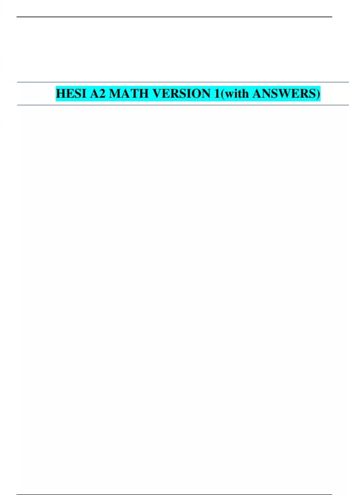 HESI A2 MATH VERSION 1(with ANSWERS)