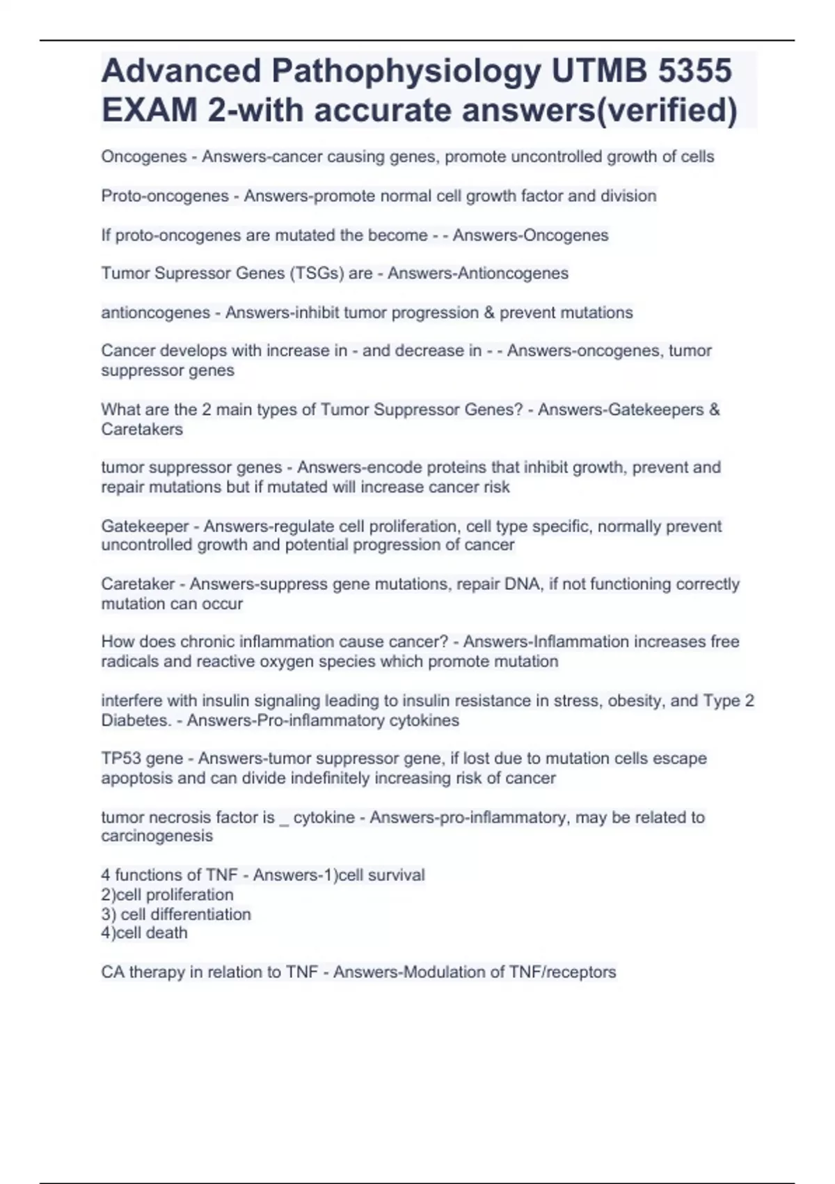 Advanced Pathophysiology UTMB 5355 EXAM 2-with accurate answers(verified)