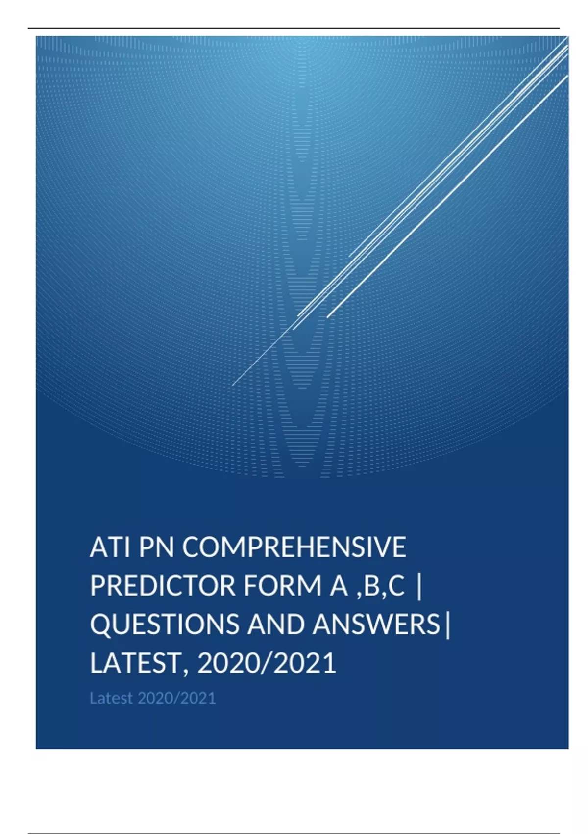 ATI PN COMPREHENSIVE PREDICTOR FORM A ,B,C |QUESTIONS AND ANSWERS| LATEST, 2020/2021