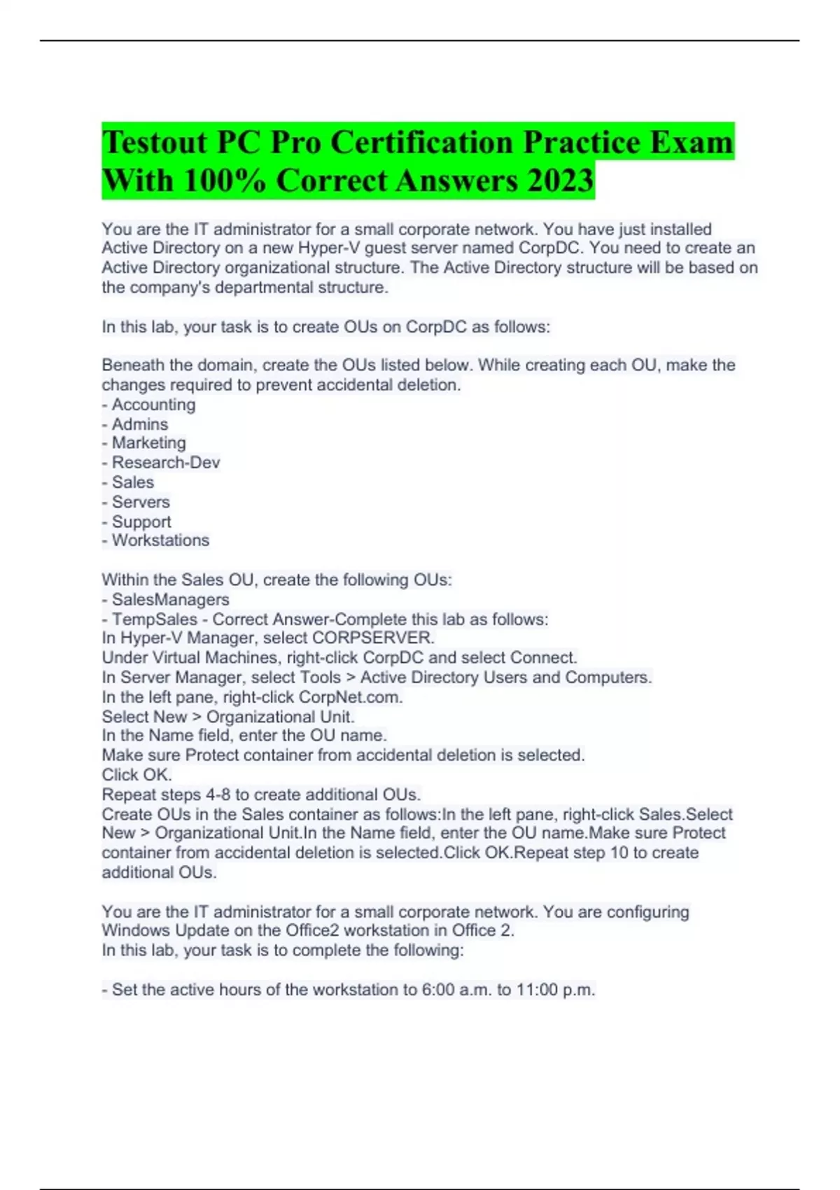 Testout PC Pro Certification Practice Exam With 100% Correct Answers 2023