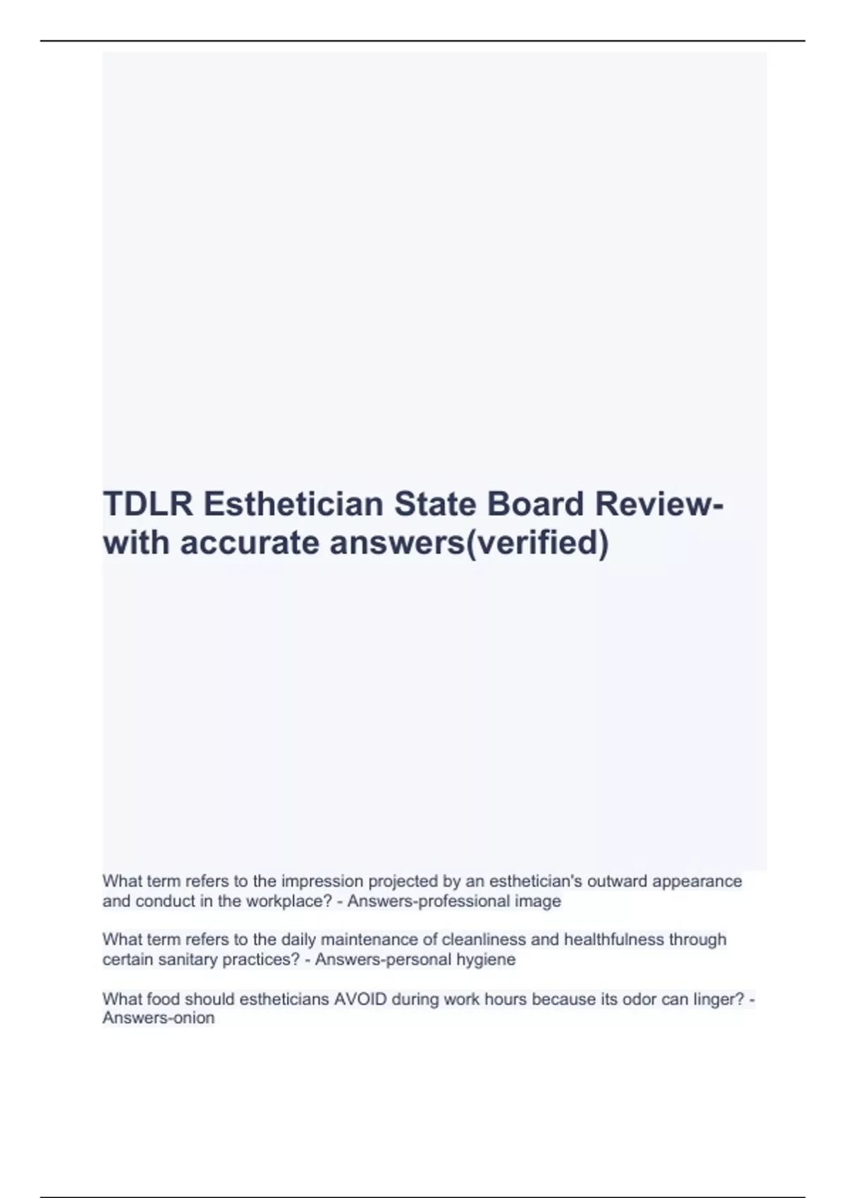 TDLR Esthetician State Board Review-with accurate answers(verified)graded A