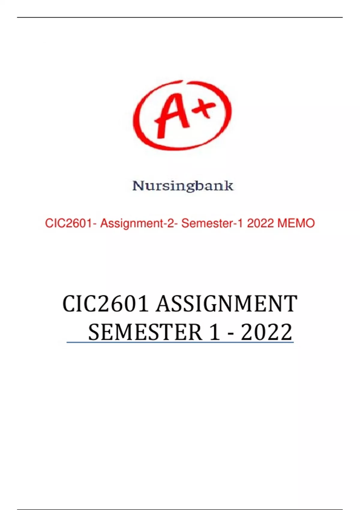 Summary CIC2601- Assignment-2- Semester-1 2022 MEMO