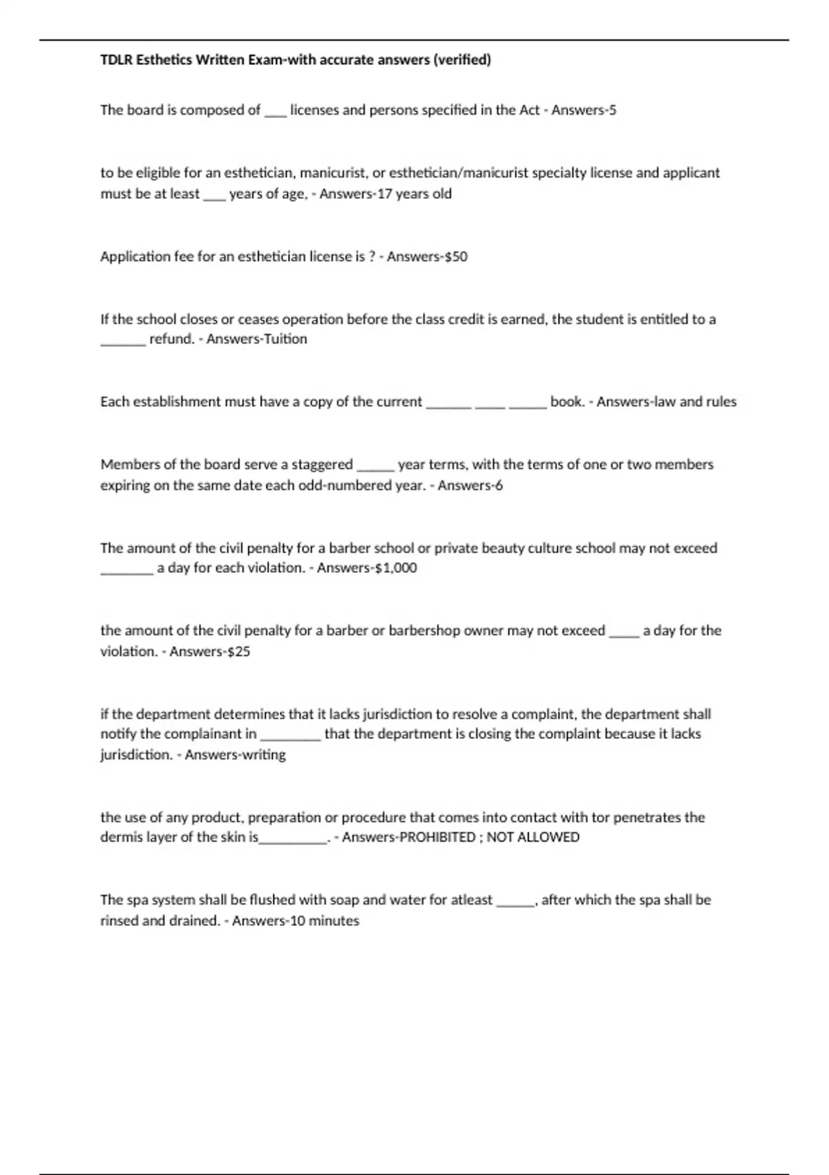 TDLR Esthetics Written Exam-with accurate answers (verified)graded A
