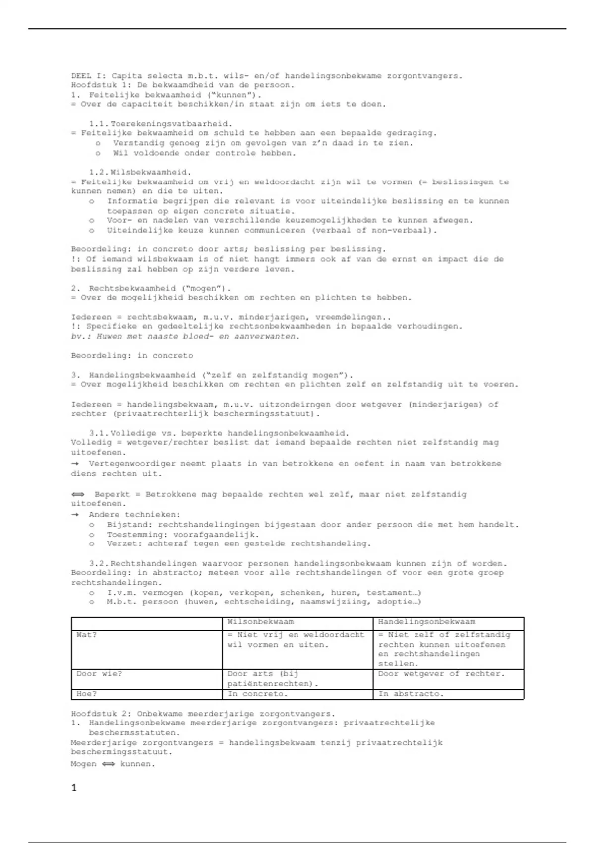 DEEL I: Capita selecta m.b.t. wils- en/of handelingsonbekwame zorgontvangers.