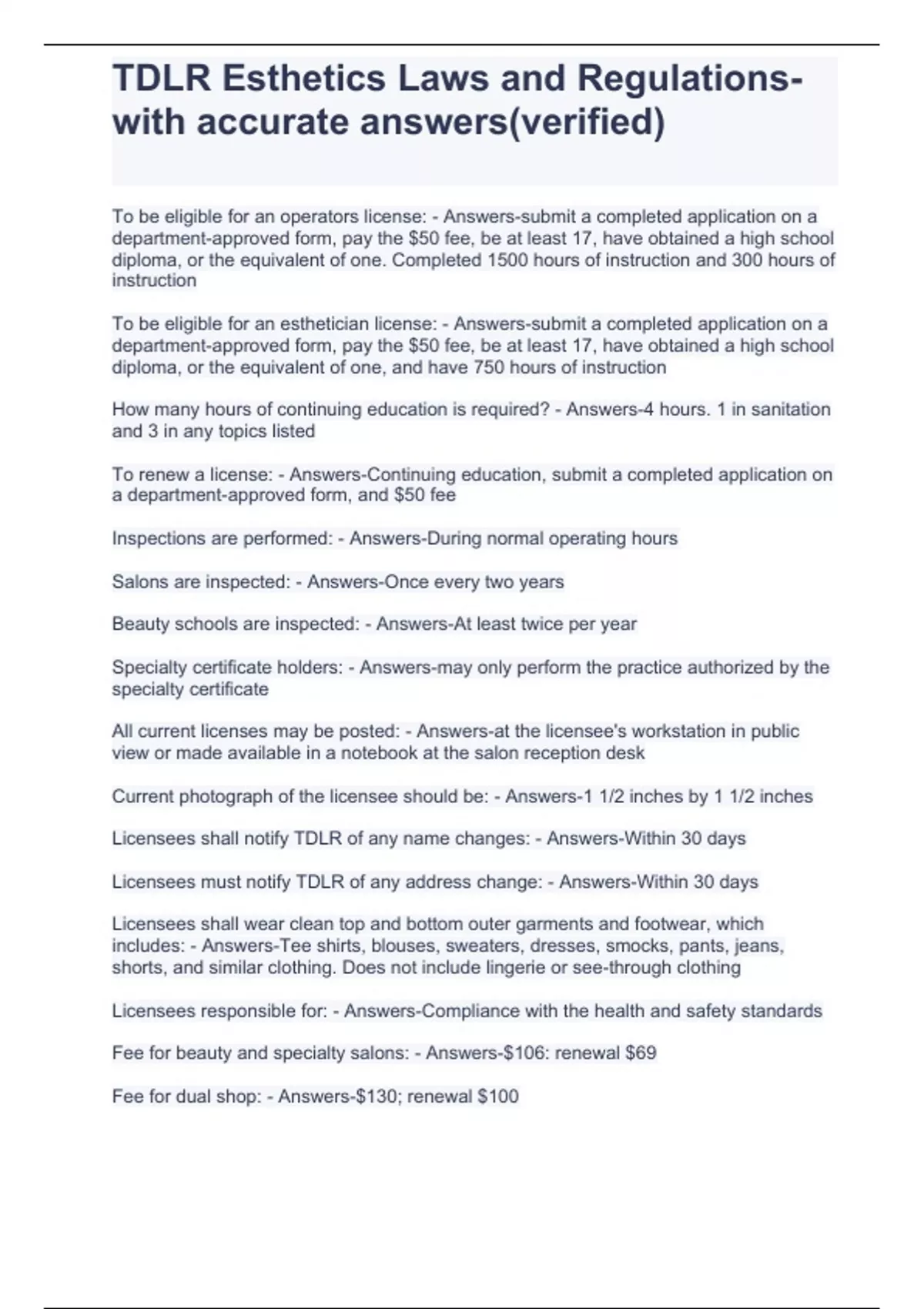 TDLR Esthetics Laws and Regulations- with accurate answers(verified)