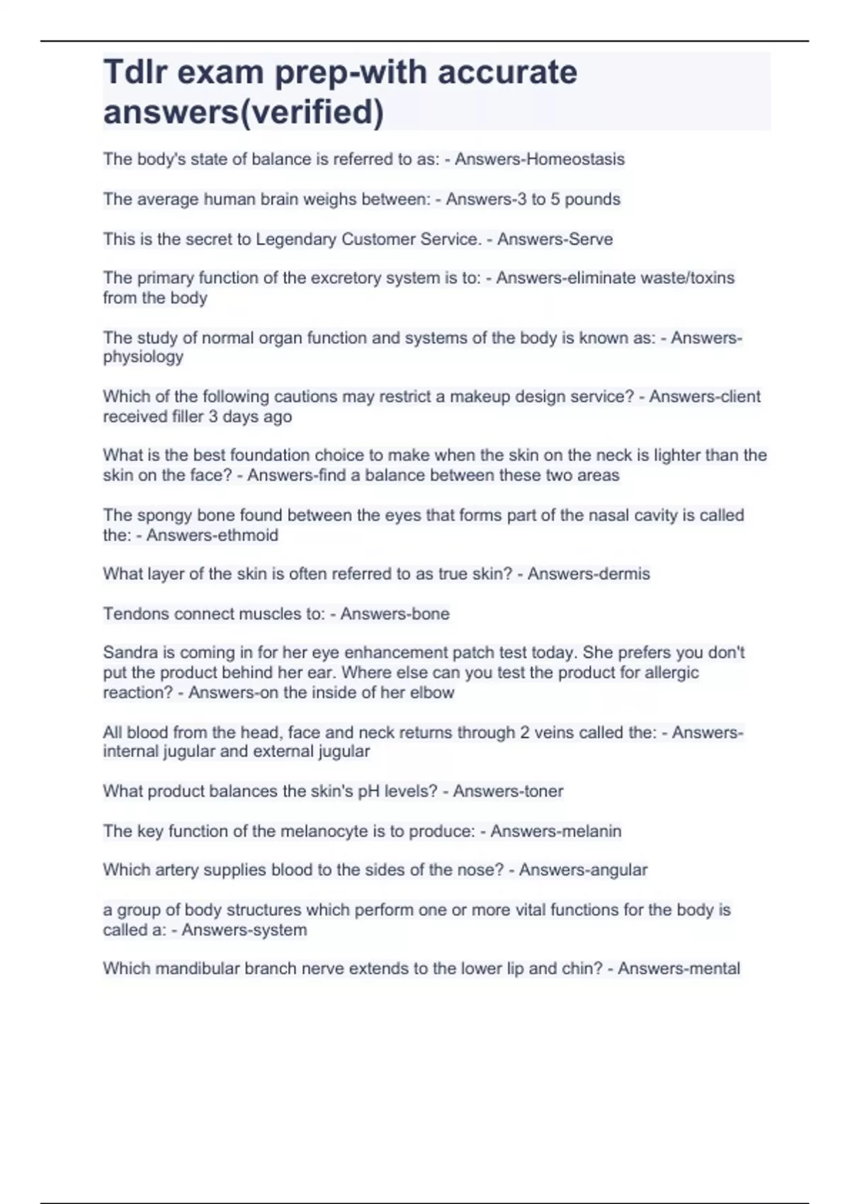 tdlr exam prep with accurate answersverified